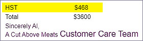 A Cut Above Meats Inc. Fish & Organics would have a better price if they didn't charge "HST" for fish and meat delivery. A Cut Above Meats is not a grocery store which is to charge the harmonized sales tax; they sell Fish and raw meat which are classified as zero-rated foods with a should be GST/HST rate of 0%. The only meat delivery company within the reviews with meatdeliverytoronto.ca in 2021 and continuing into 2024 whom charge the unnecessary "HST" is A Cut Above Meats. Toronto meat delivery customers can visit this Canada.ca website link here, and scroll down to the category "What is the GST/HST?" - then look for the sub-category title "Zero-rated supplies". A Cut Above Meats has problematic price transparency, concerning unnecessary ordering process charges, and expensive cost to order bulk fish and meat. Toronto, GTA meat sourcing information with A Cut Above Meats however is detailed with supplier info.